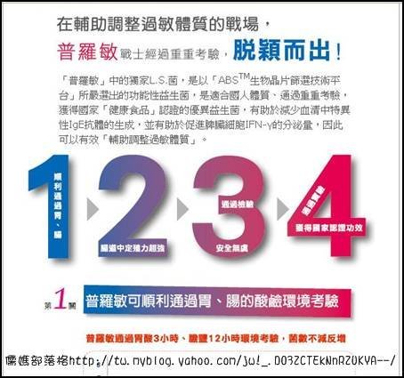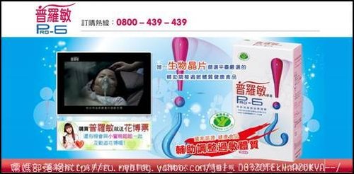 普羅敏是第一個通過衛生署健康食品認證的益生菌,舉凡過敏有關的煩惱,不論異位性皮膚炎,鼻子過敏,皮膚癢癢或有氣喘等過敏症狀的人,普羅敏都能有效調整輔助調整過敏體質! http://www.pro6.tw/